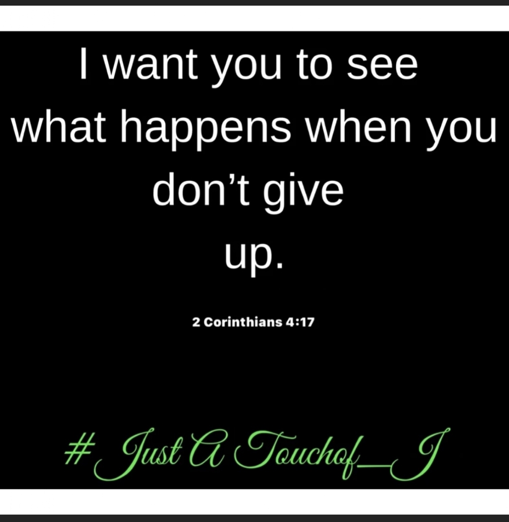 He promised to never give up on me! His word says in (2 Corinthians 4:17) "For our light affliction, which is but for a moment, worketh for us a far more exceeding and eternal weight of glory!"
