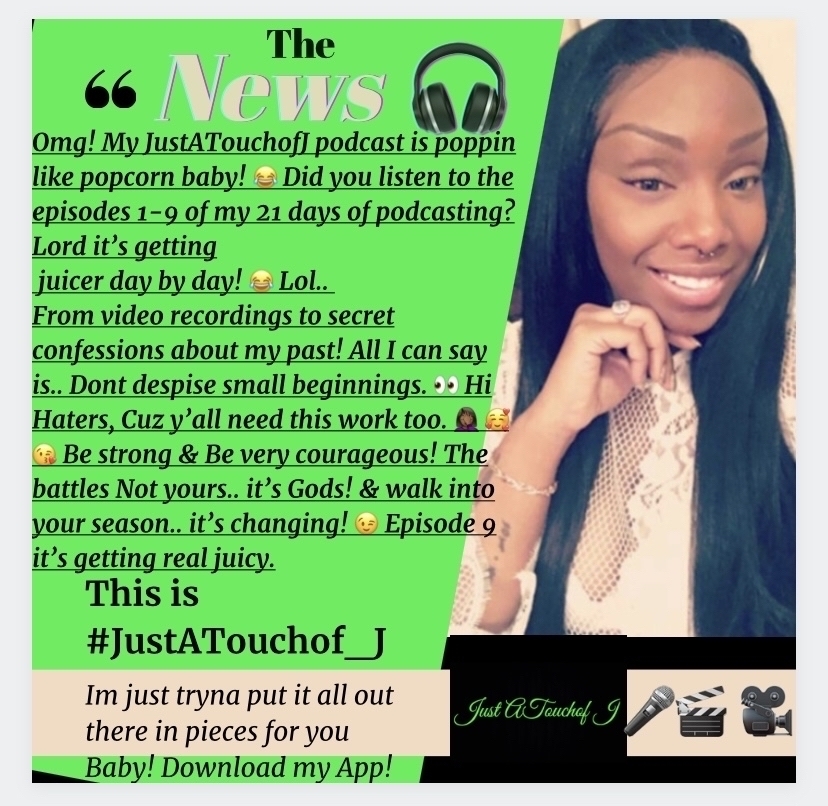 Just join me on my 21 Day's of Podcasting to hear all about my journey to recovery from my sudden health issue. Watch all my exclusive personal videos & listen to my podcast for free on my JustATouchof_J Mobile App in the (LISTENTOV) section. All episodes are also being streamed on over 30 different podcast networks world wide & it's also available on all my social media platforms.