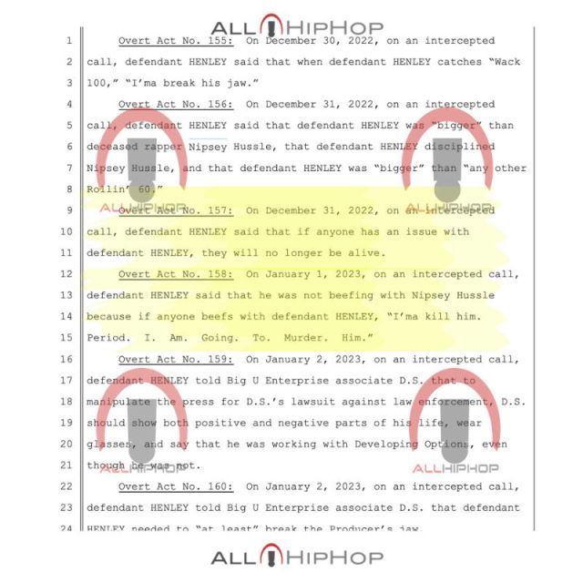 Federal prosecutors have sharpened their case against Eugene "Big U" Henley with a slate of new overt acts that depict him as a violent shot-caller who boasted about disciplining Nipsey Hussle and others, even as he publicly branded himself a community mentor.