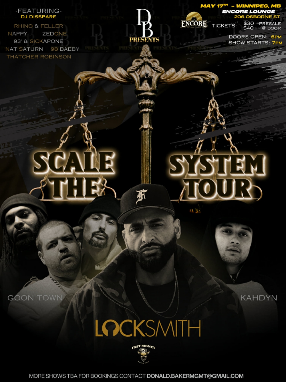 Winnipeg, MB. Encore Lounge + Patio Scale The System Tour Lock Smith Goontown K Niggz Dj Disspa