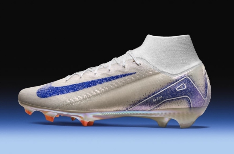 Get ready to dominate the pitch with the Nike Mercurial Superfly 9 Elite, slated for release in the eye-catching "Blueprint" colorway as part of the Blueprint pack. This performance soccer cleat boasts a sleek white color scheme accented with vibrant blue and orange details. The cleats will make a statement on the field. Designed for speed and agility, the Nike Mercurial Superfly 9 Elite is engineered to help players reach their full potential on the pitch. With its lightweight construction and responsive cushioning, this soccer cleat provides the support and comfort needed to outmaneuver opponents and score goals with ease.