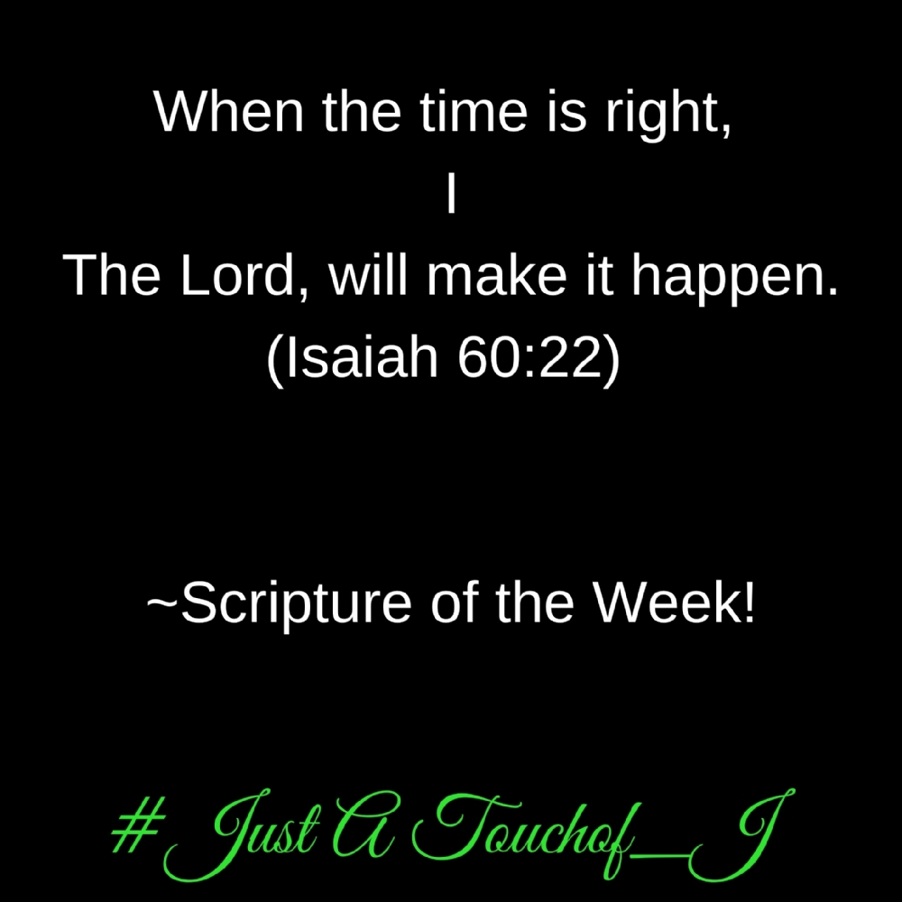 Scripture of the Week! (Isaiah 60:22) When the time is right, I, The Lord, will make it happen.