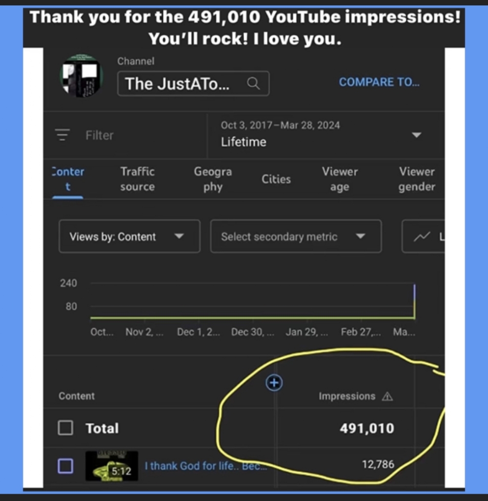 Thank You For The 491,010 New Impressions Via YouTube! Go Listen To My New Podcast Now!