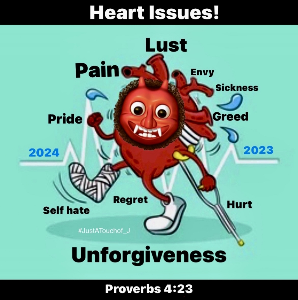 The first topic was all about, "The demons that are on you when you're in the region!" The Second topic is all about "Heart Issues!" Do you have them? Issues of the heart cause pain, hurt, envy, lust, pride, sickness, greed, self hate, regret, and unforgiveness.. just to name a few. The Lord gave me some wisdom about it so..