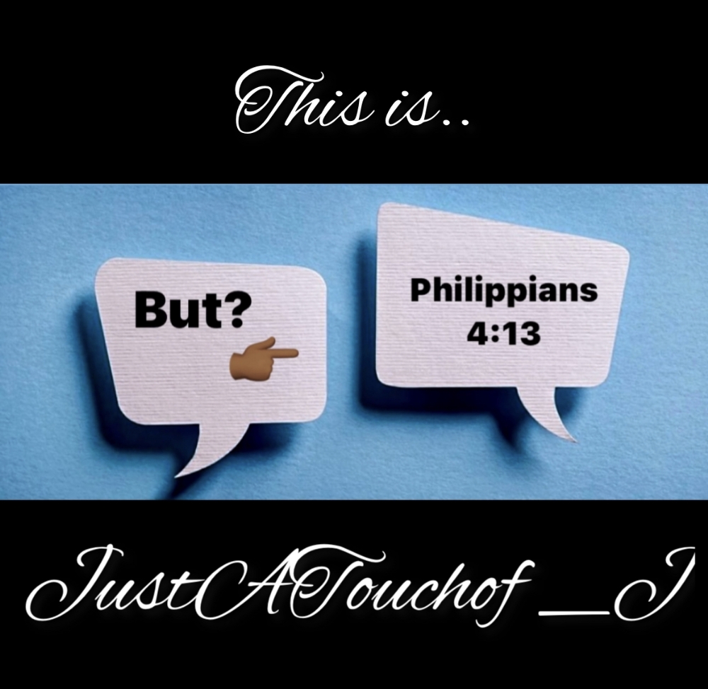 Its Time For #JustATouchof_J 's Weekly Affirmation. Don't Let Your But Get In The Way. Phillipians 4