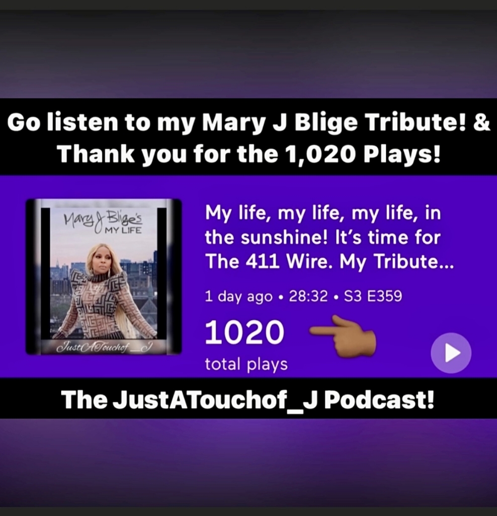 Today it's all about the Queen Ms. Mary J Blige! I can't help but to show her love again. You guys have listened to my music tribute to her over 1,020 times via my JustATouchof_J Podcast! Thank you so much. I'm glad you loved it!
