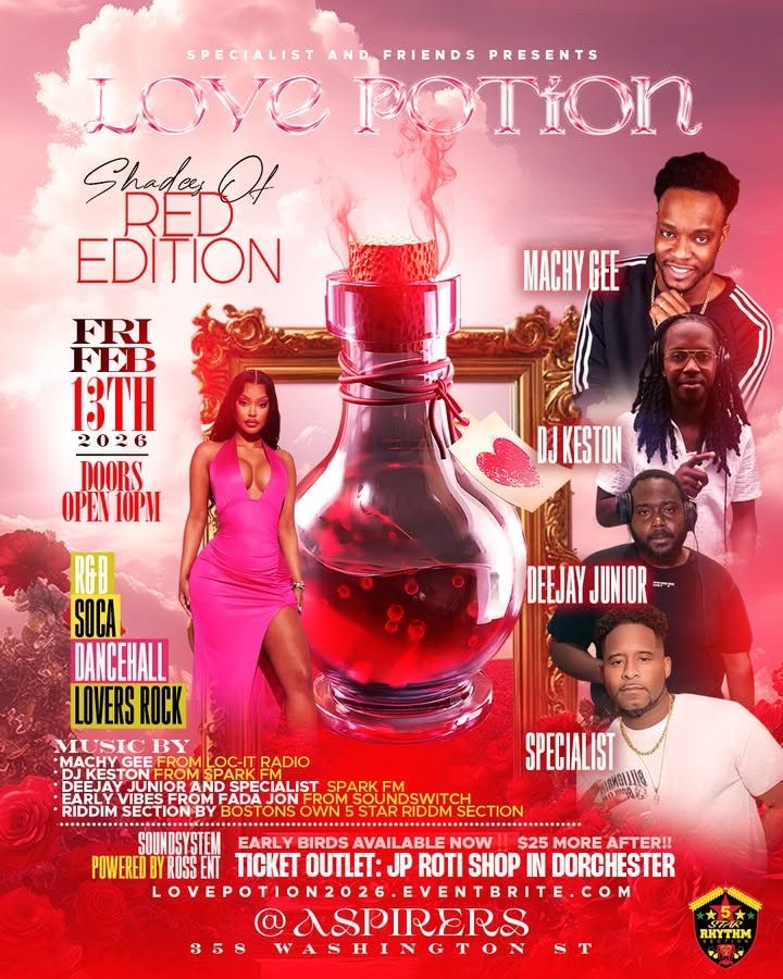 Fall under the spell of ?Love Potion: Shades of Red?, a Valentine's Day celebration wrapped in romance and allure ????. Dress in your most captivating shade of red-from ruby to rose ?? and indulge in decadent cocktails ???? and seductive vibes ??. Featuring a Riddim Section ?? led by deejays ?? bringing nonstop energy to the dance floor ????????.