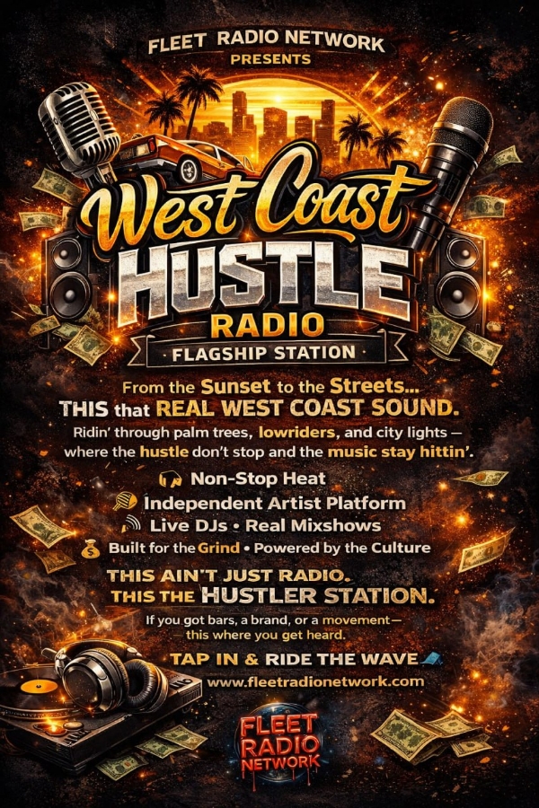 #WestCoastHustle #FleetRadioNetwork #FleetDJs #WestCoastVibes #HustlerStation #IndependentArtists #DJLife #Mixshow #RadioPlay #MusicMarketing #IndieArtistSupport #NowSpinning #UrbanRadio #HipHopCulture #WestCoastSound #GrindMode #MusicPromotion #TapIn #LiveDJs #RadioStation #UnsignedHype #BreakingRecords #DJMZA #FleetDJsMovement #StayHustling