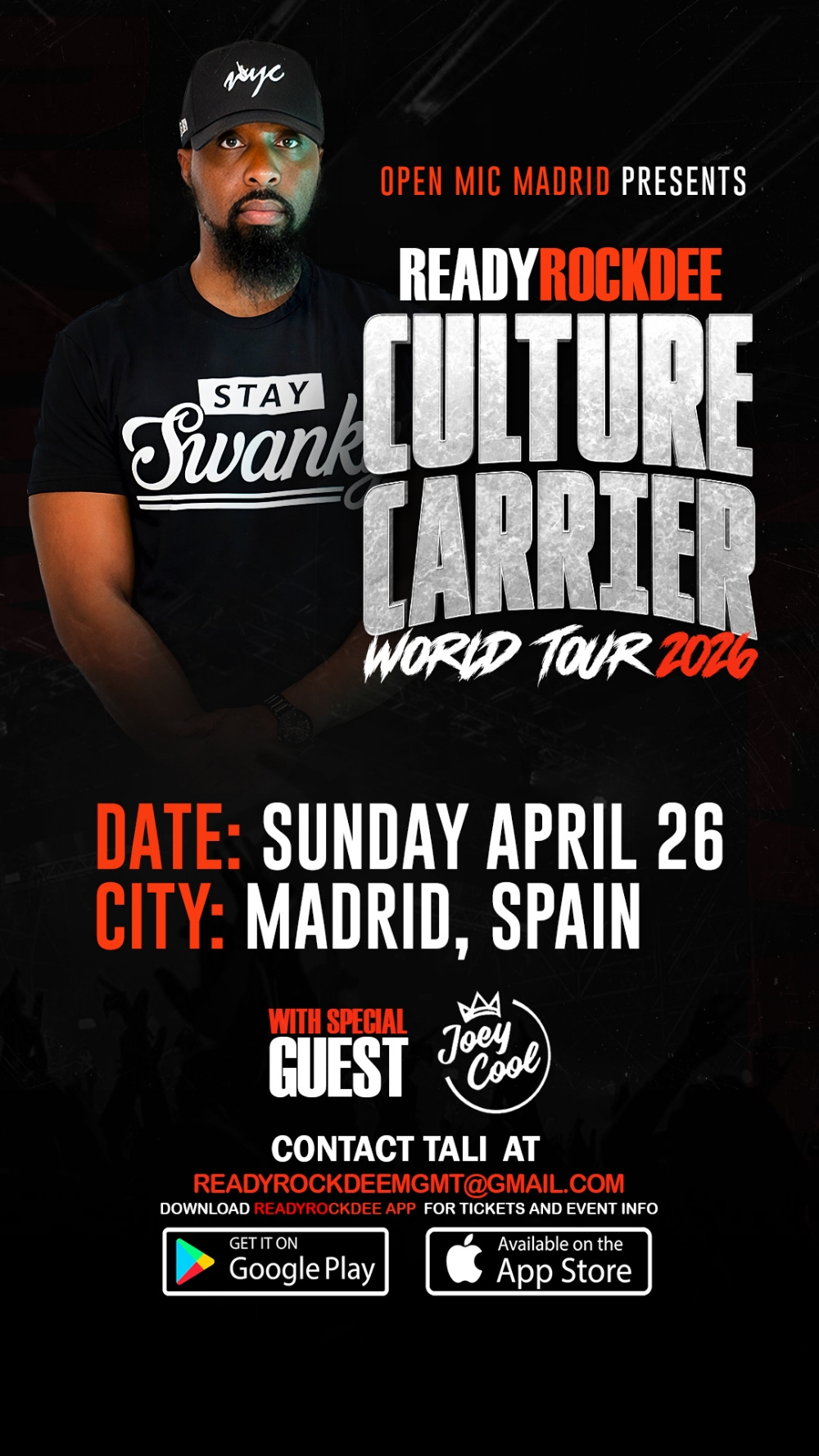 On Sunday, April 26, 2026, independent hip-hop force ReadyRockDee brings the Culture Carrier World Tour to Madrid, Spain - delivering a defining moment where New York hip-hop roots connect with one of Europe's most passionate and expressive cities.